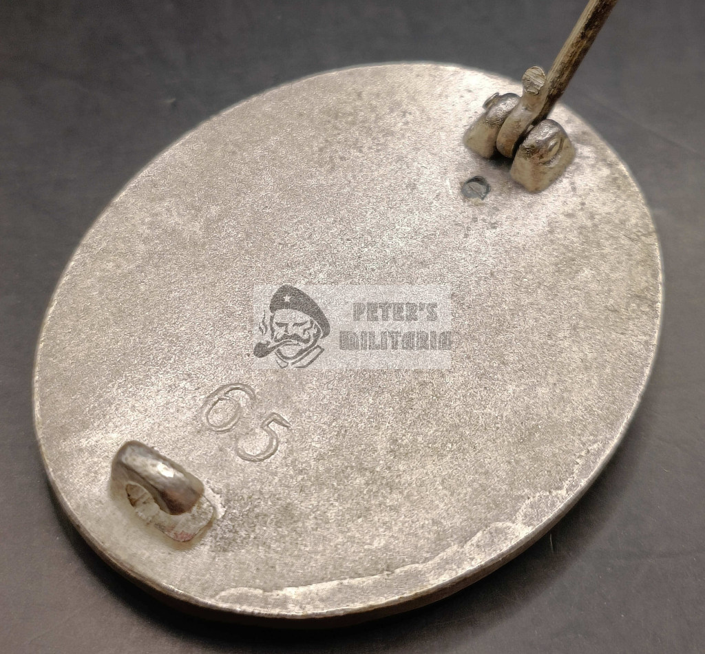 Hátoldalán a jelvény test részét képező szerelvényezéssel és "65" PKZ kóddal (Klein & Quenzer)