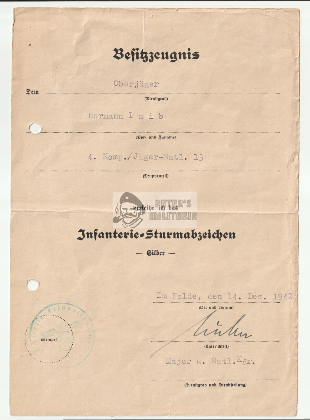 Hermann Laib, Oberjäger - Jäger Batallion 13. / 4. Kompanie