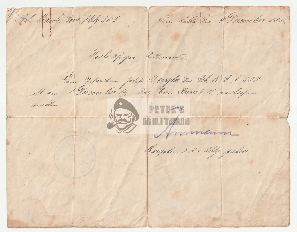 1916.12.09.. - Vaskereszt II. osztály adományozási értesítő