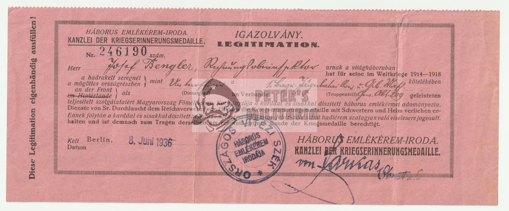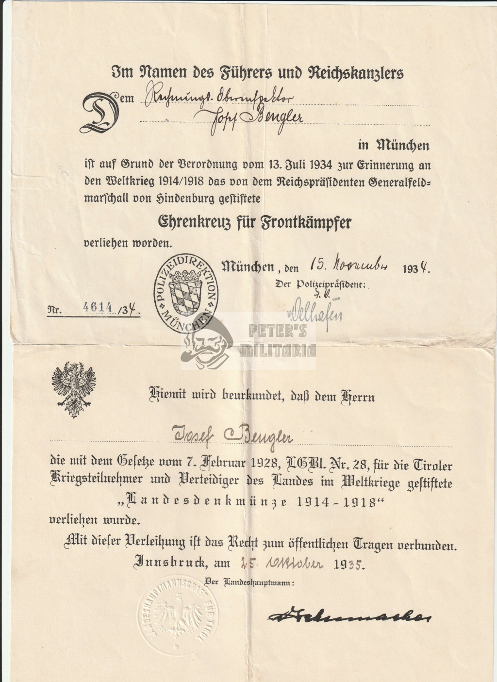 1934.11.15. - Ehrenkreuz für Frontkempfer - "Hindenburg kereszt "