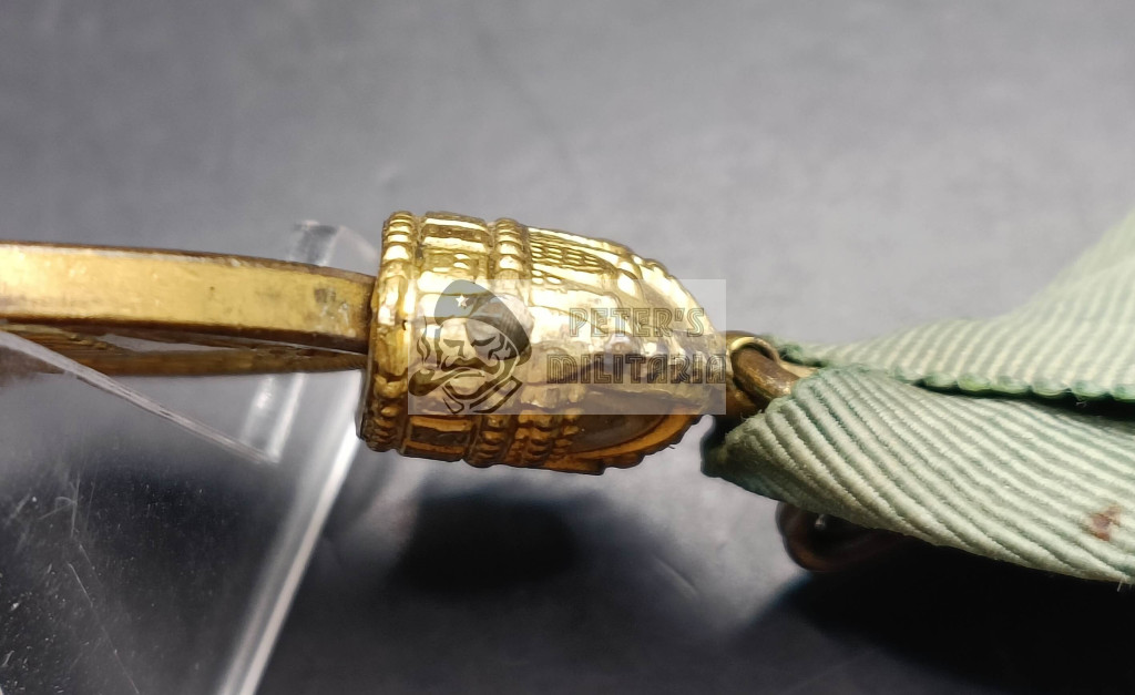 Fakó, a jelvényhez állapotban passzoló, zöld, polgári háromszögszalagon,