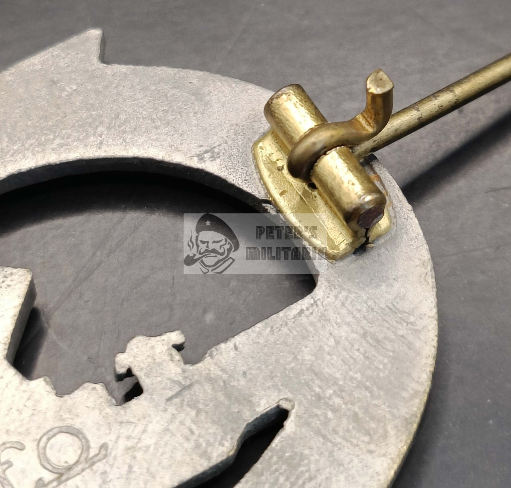 Cink alapanyagú jelvény jó állapotban, néhol felfedezhető apró színmaradványokkal.