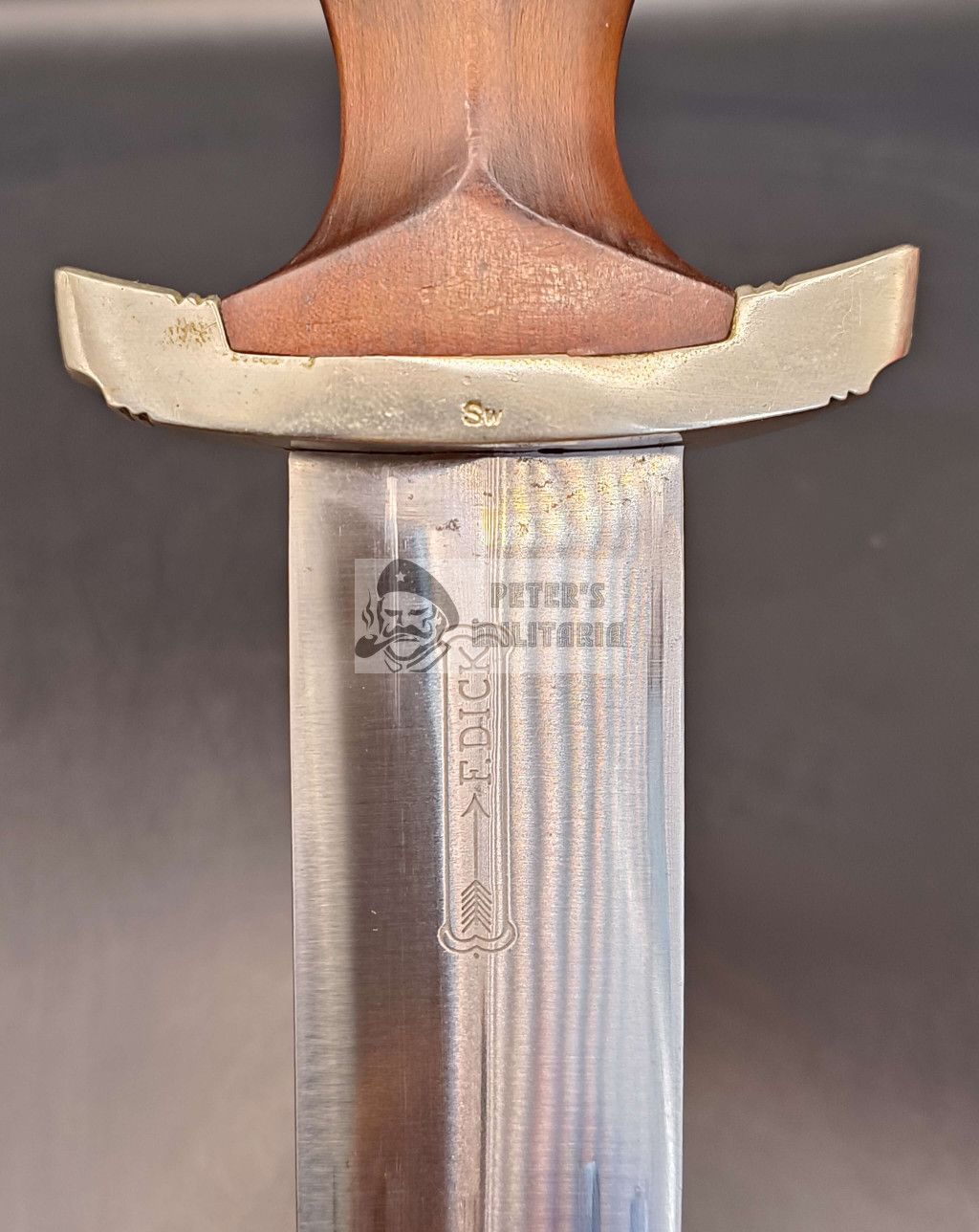 On the blade beneath it is the arrow trademark of Friedrich Dick, Esslingen, registered in 1889.