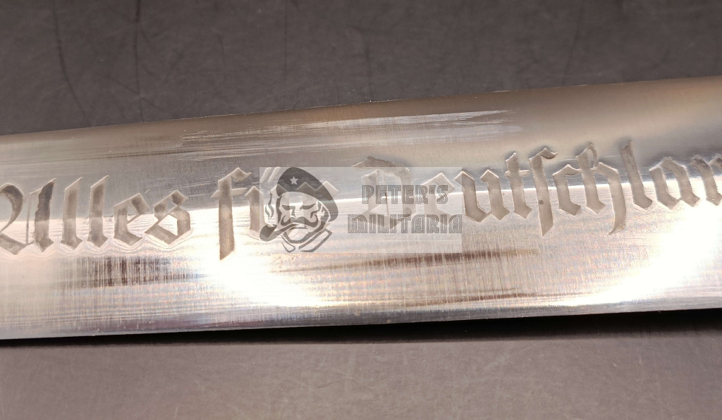 The motto is deep acid-etched, the blade shows no damage and has not been sharpened.