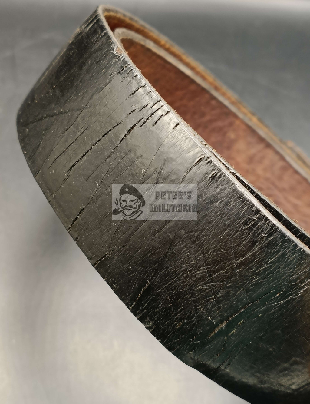 With matching patent leather belt in period-appropriate condition. Typical vertical cracking caused by lacquer drying.