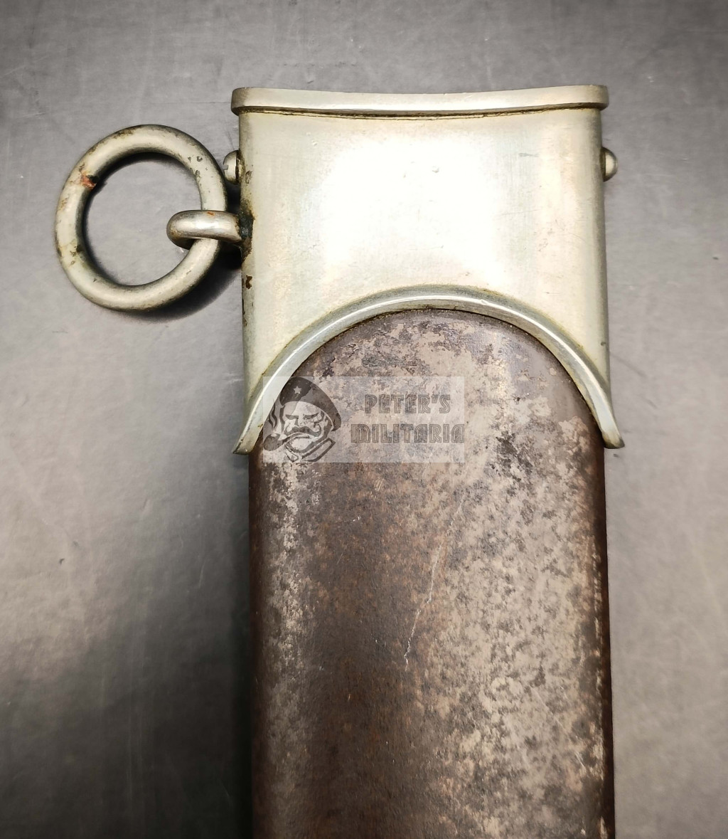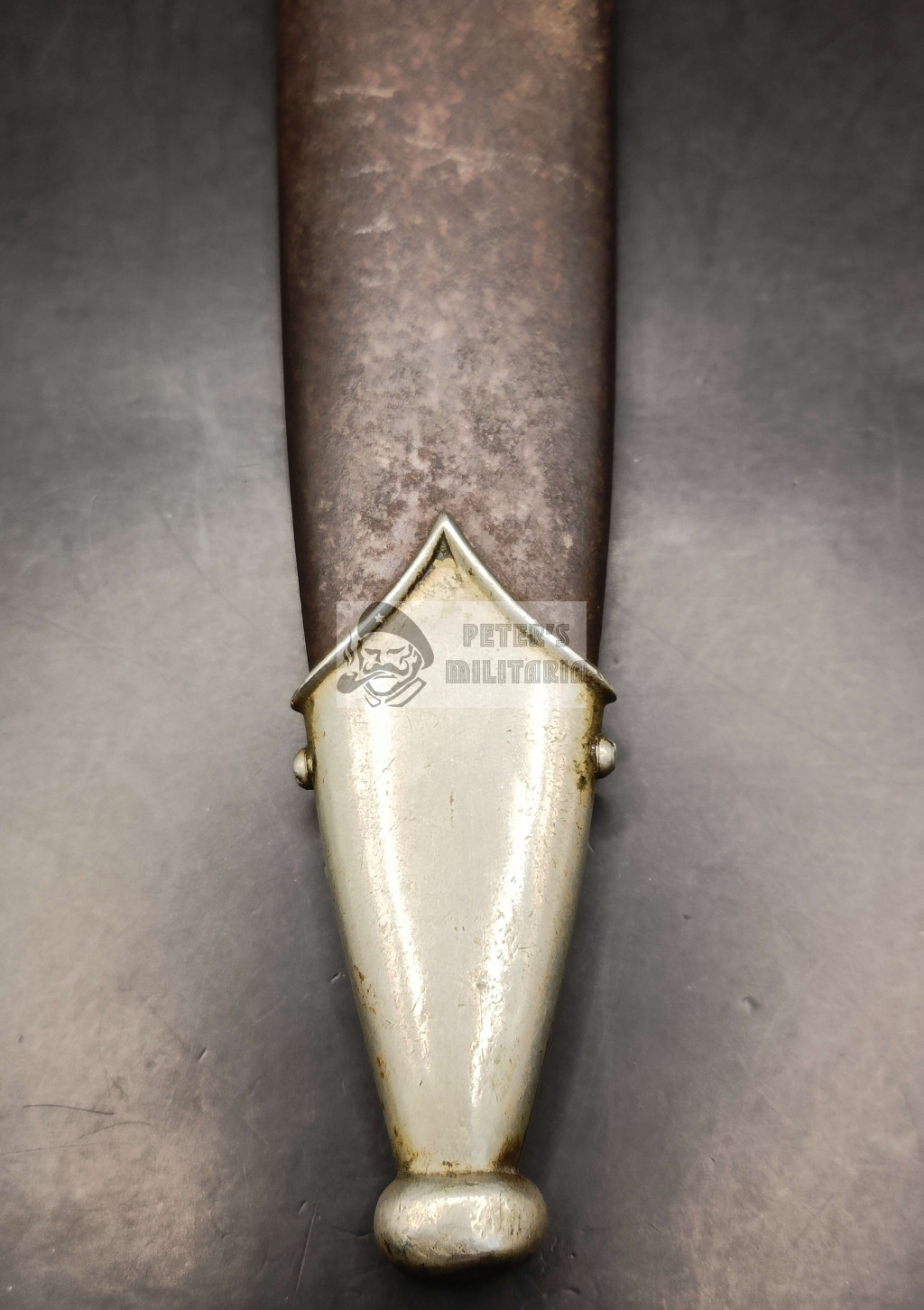 Scabbard is galvanised (anodized), not painted as on later examples.
