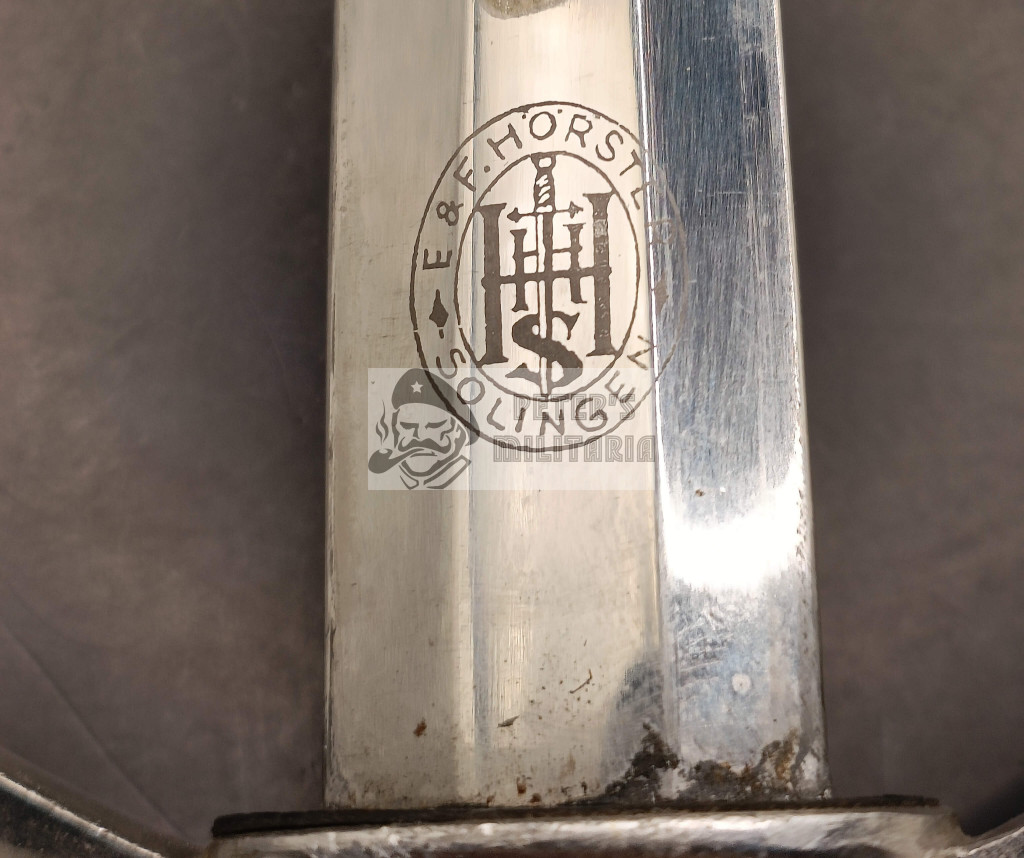 Nickel-plated blade in excellent condition, bearing acid-etched E. & F. Hörster, Solingen logo.