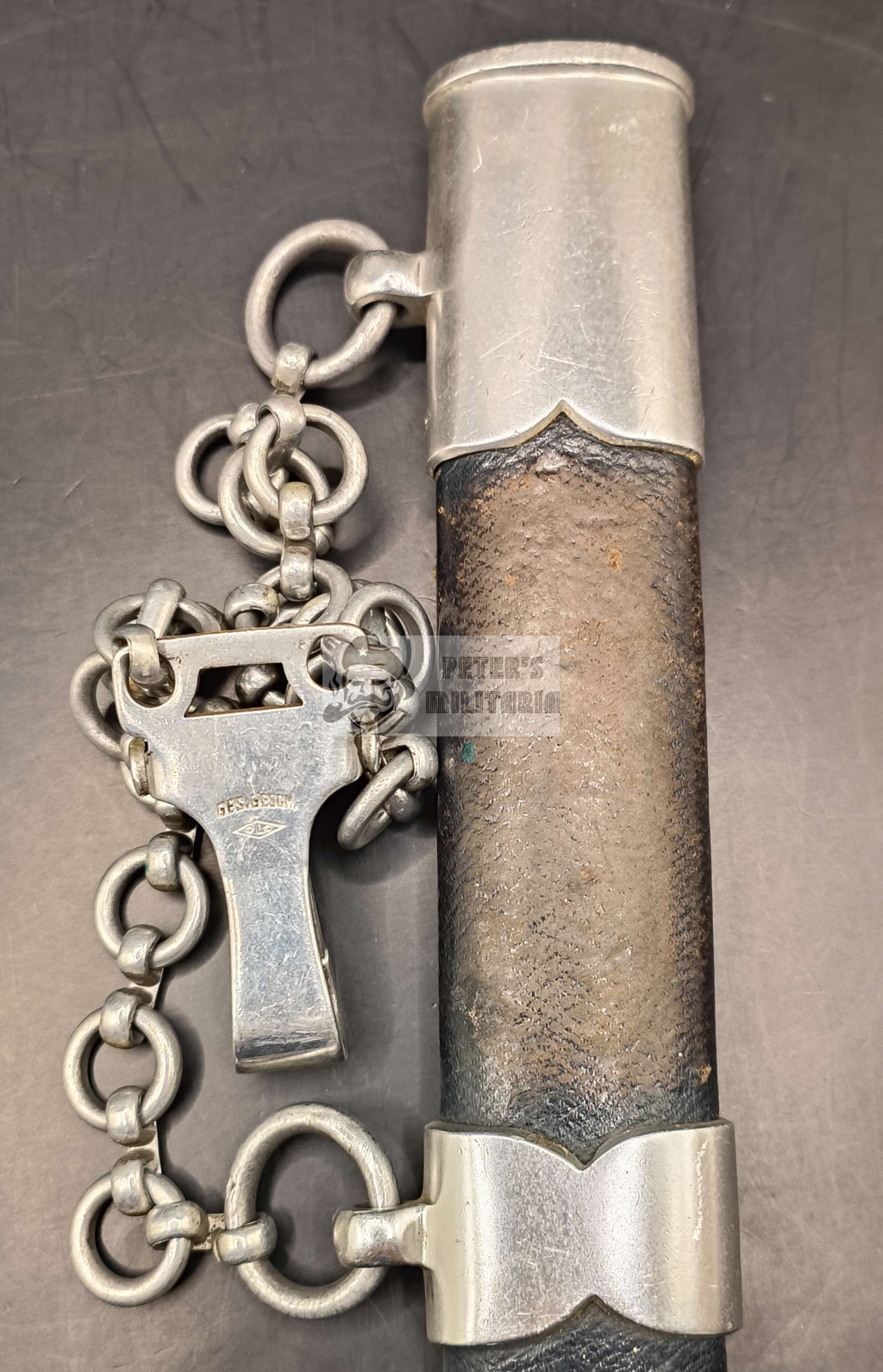 Pommel and crossguard constructed of aluminum, with gilt swastikas on both sides.
