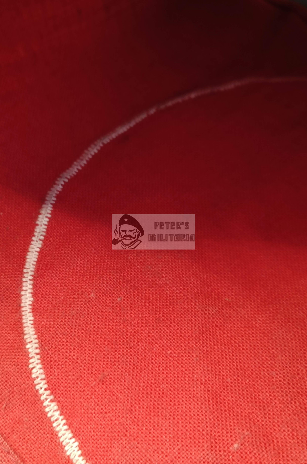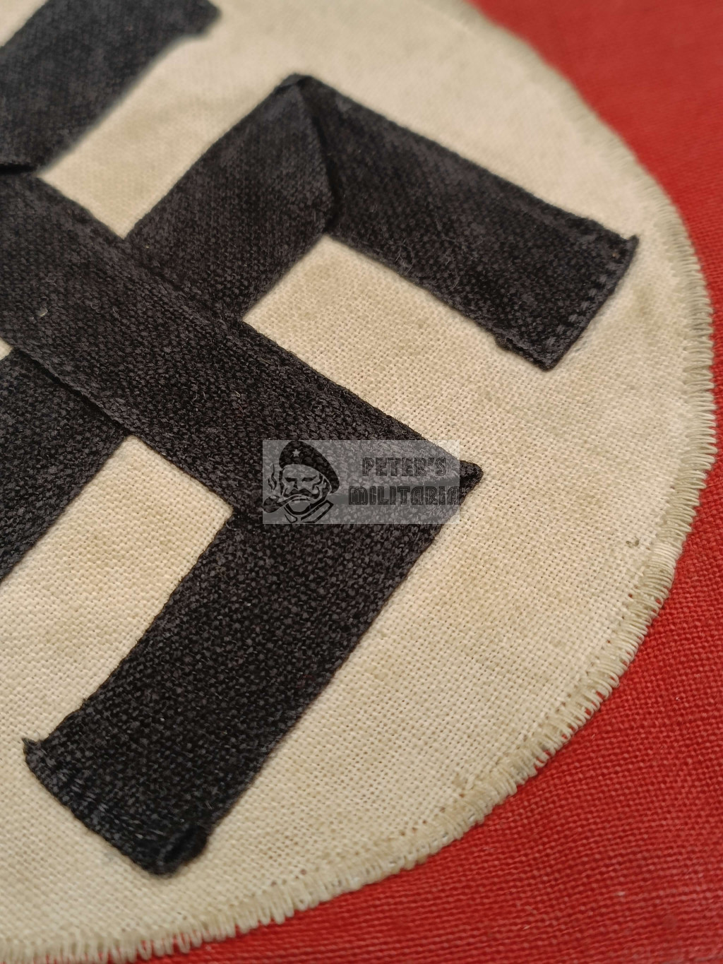 White roundel sewn onto red base, with separately sewn black swastika.