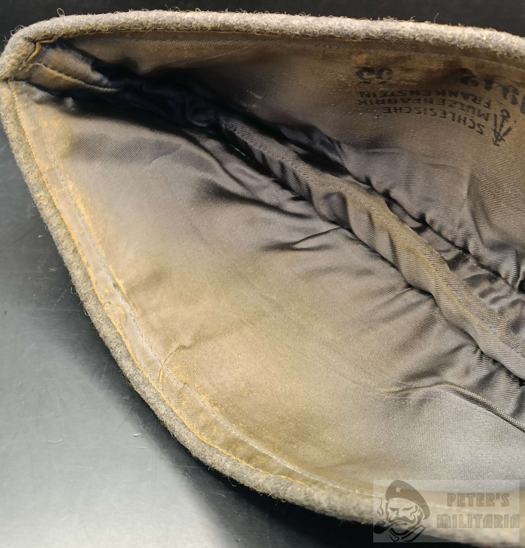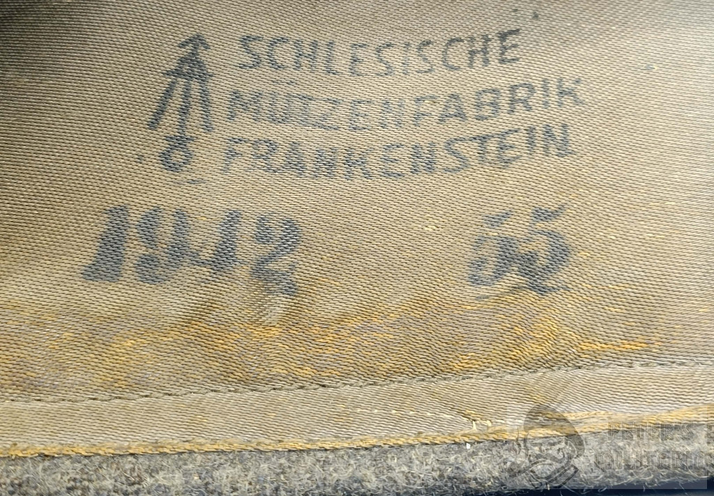 Inside clearly visible ""Schlesische Mützenfabrik, Frankenstein 1942"" maker and ""55"" size stamp.