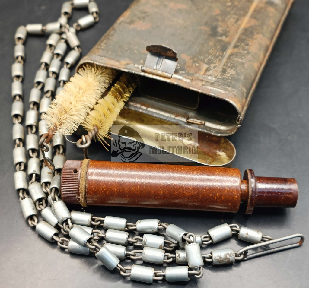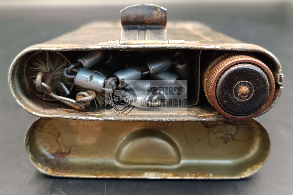 Set is complete except for the “bottle opener” tool. Brushes show period wear.