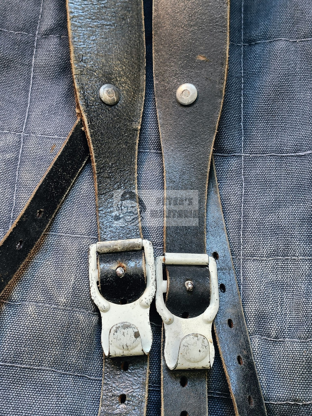 Intact leather straps and loops.