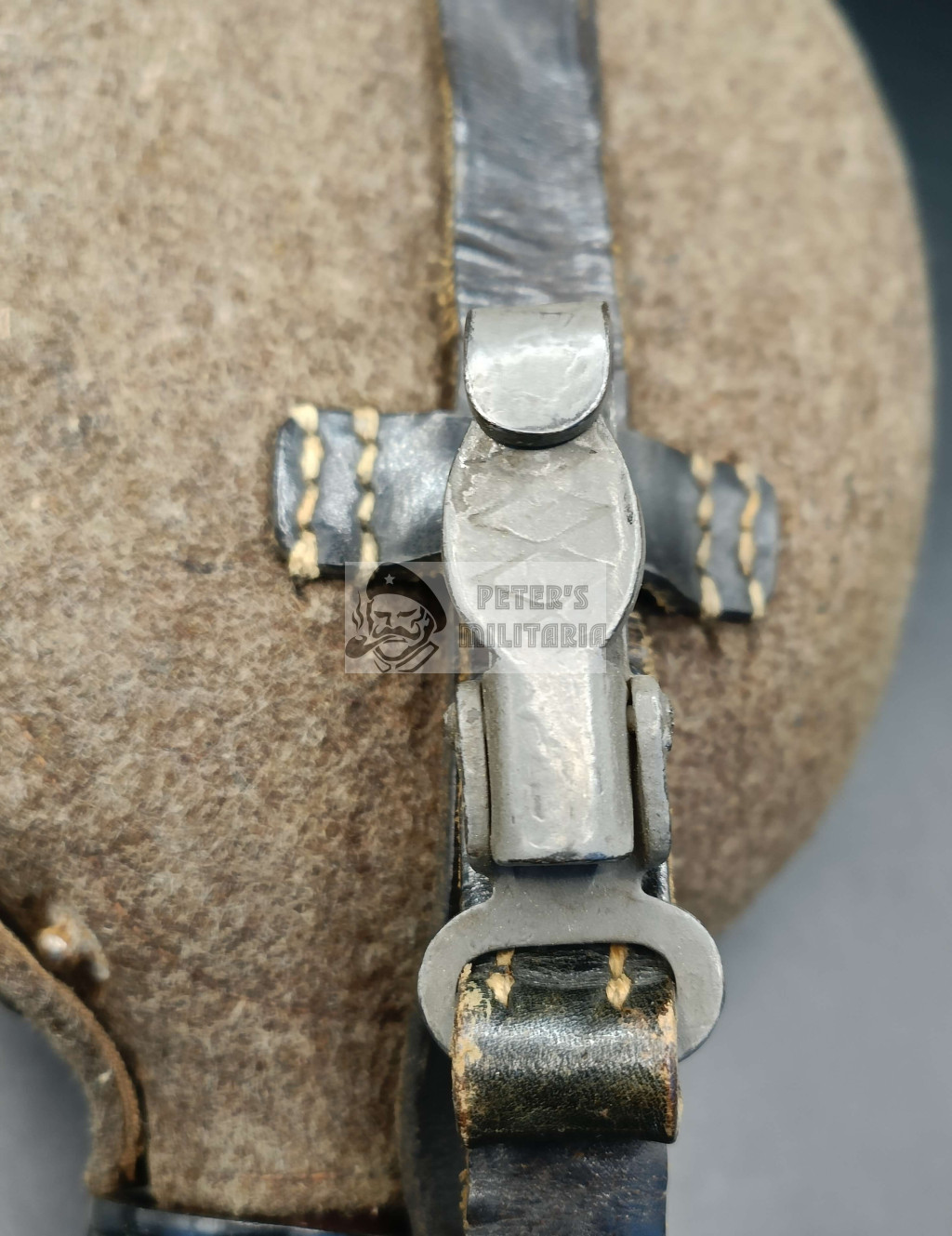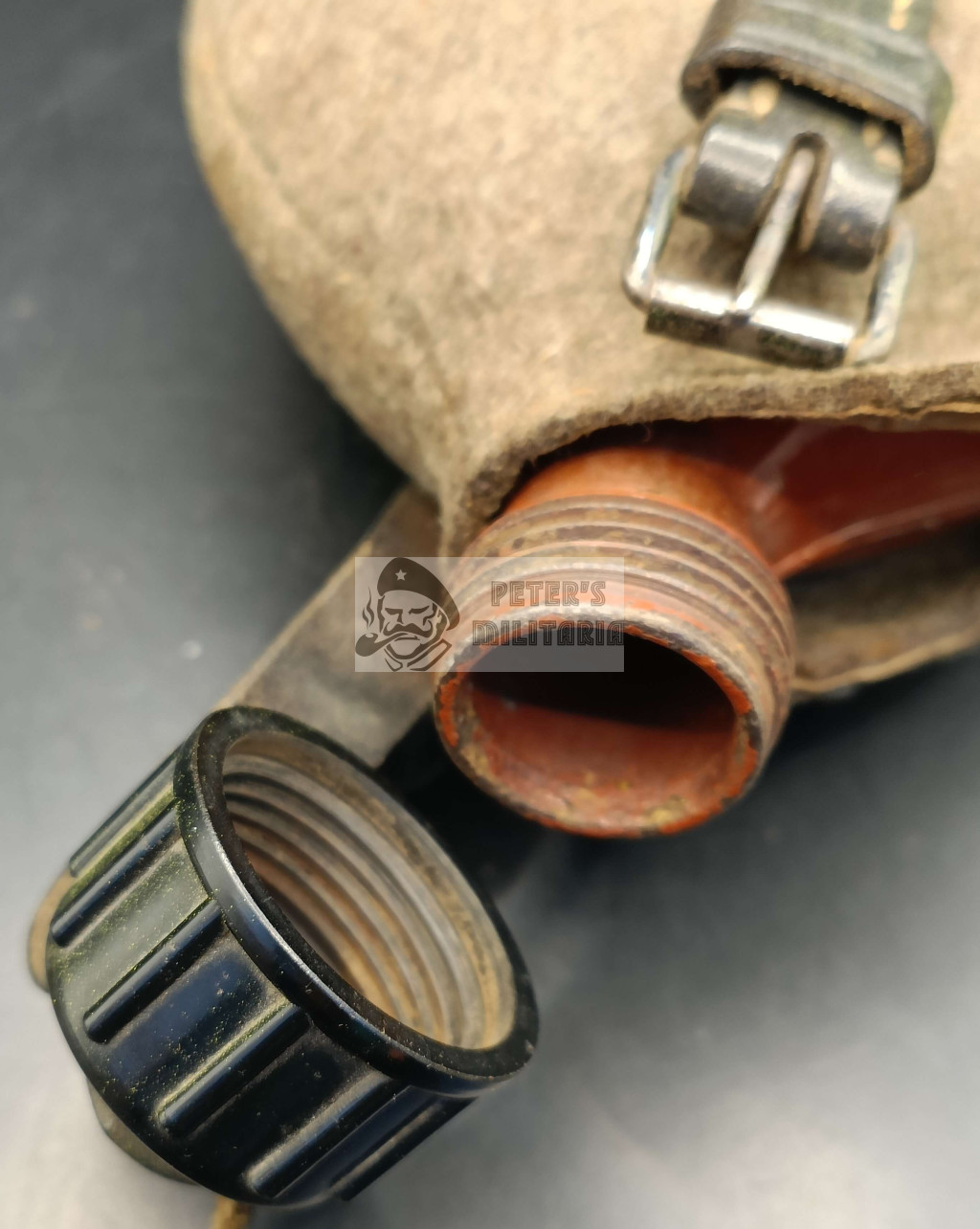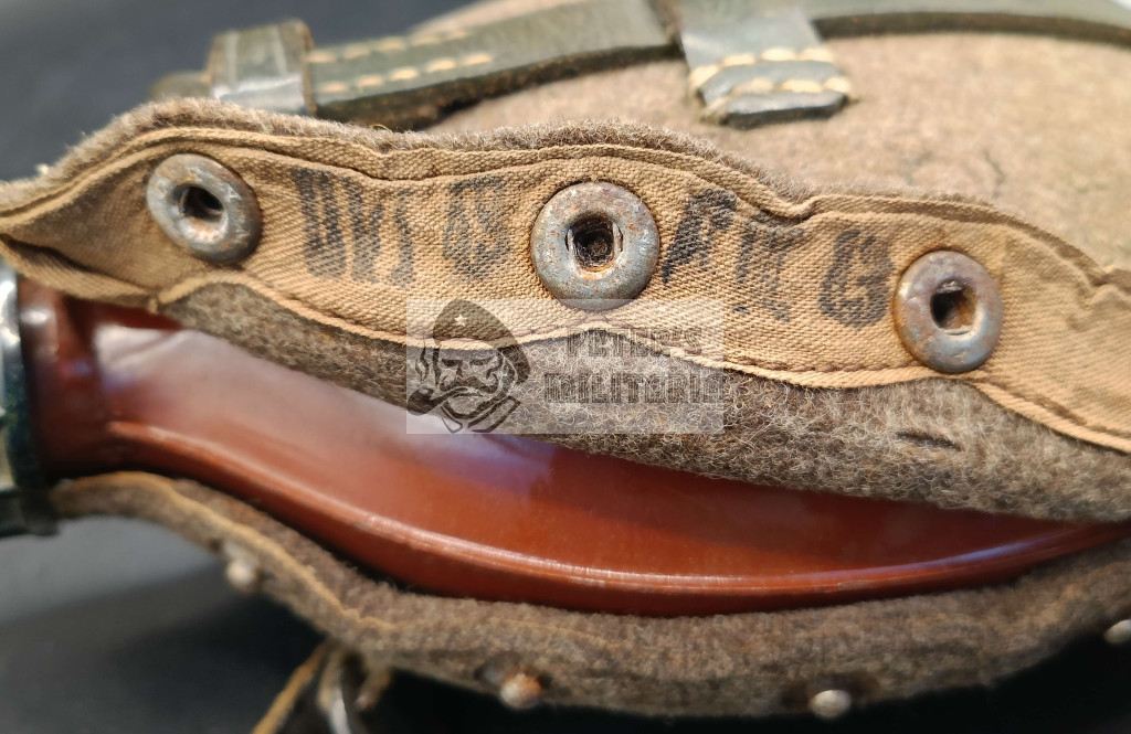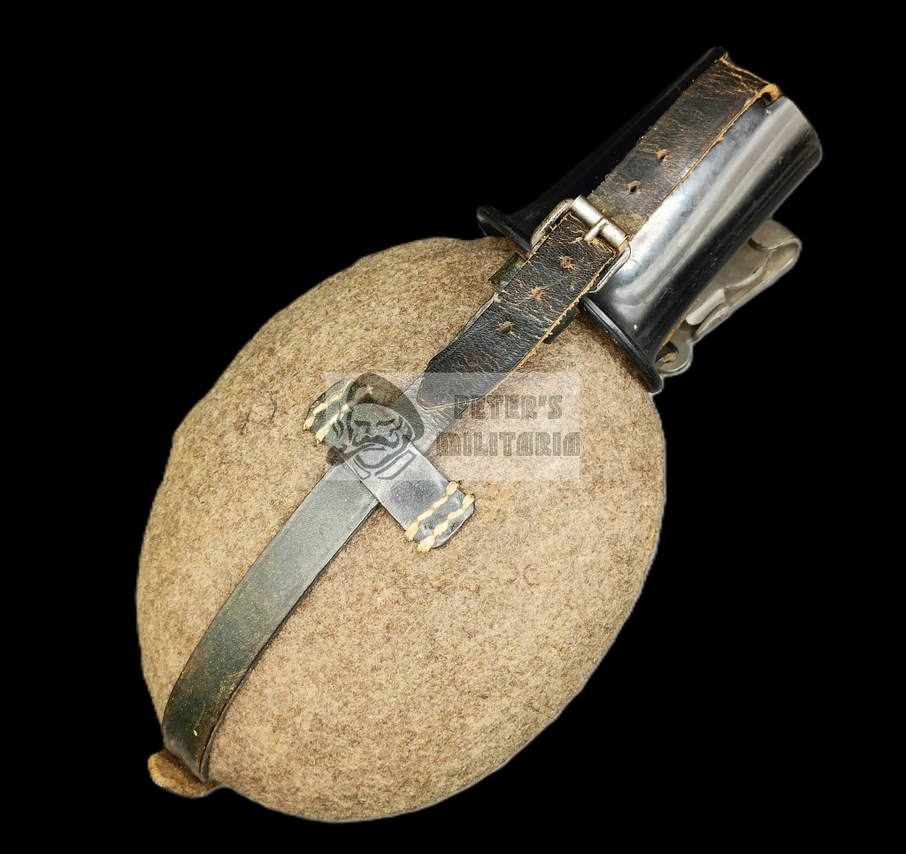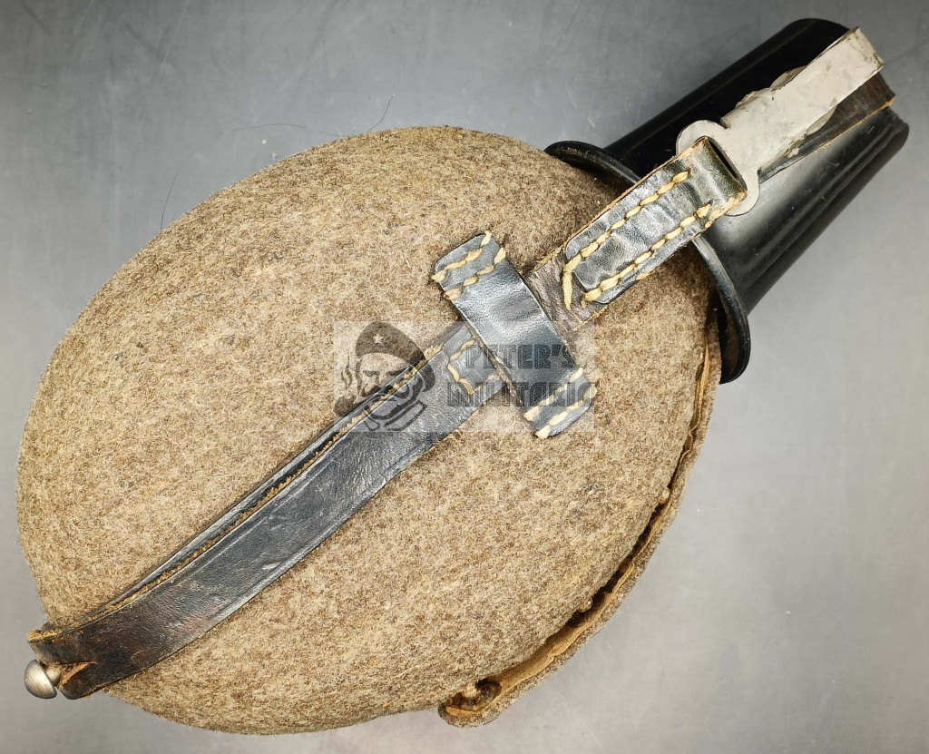 Steel canteen body with intact fabric cover. All snaps intact and functional.