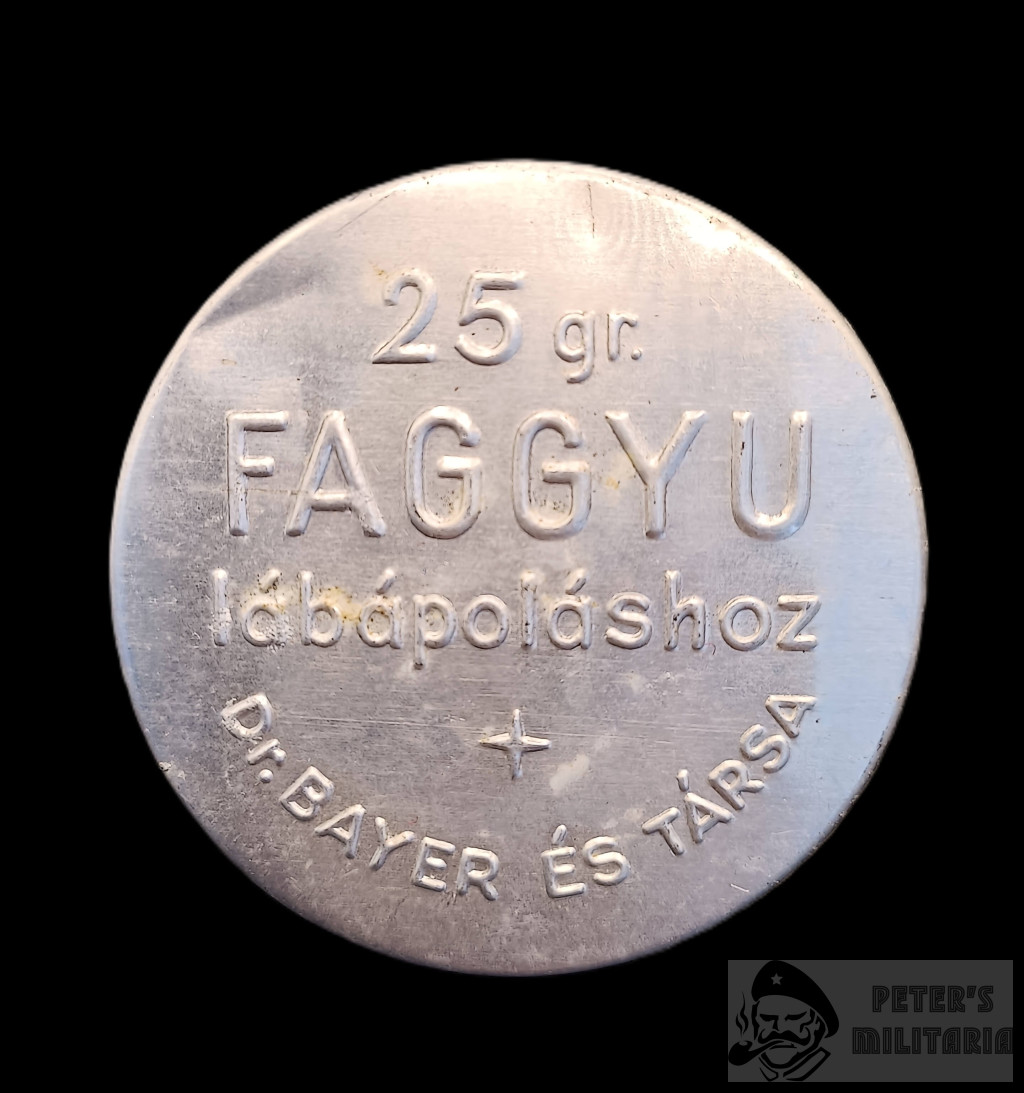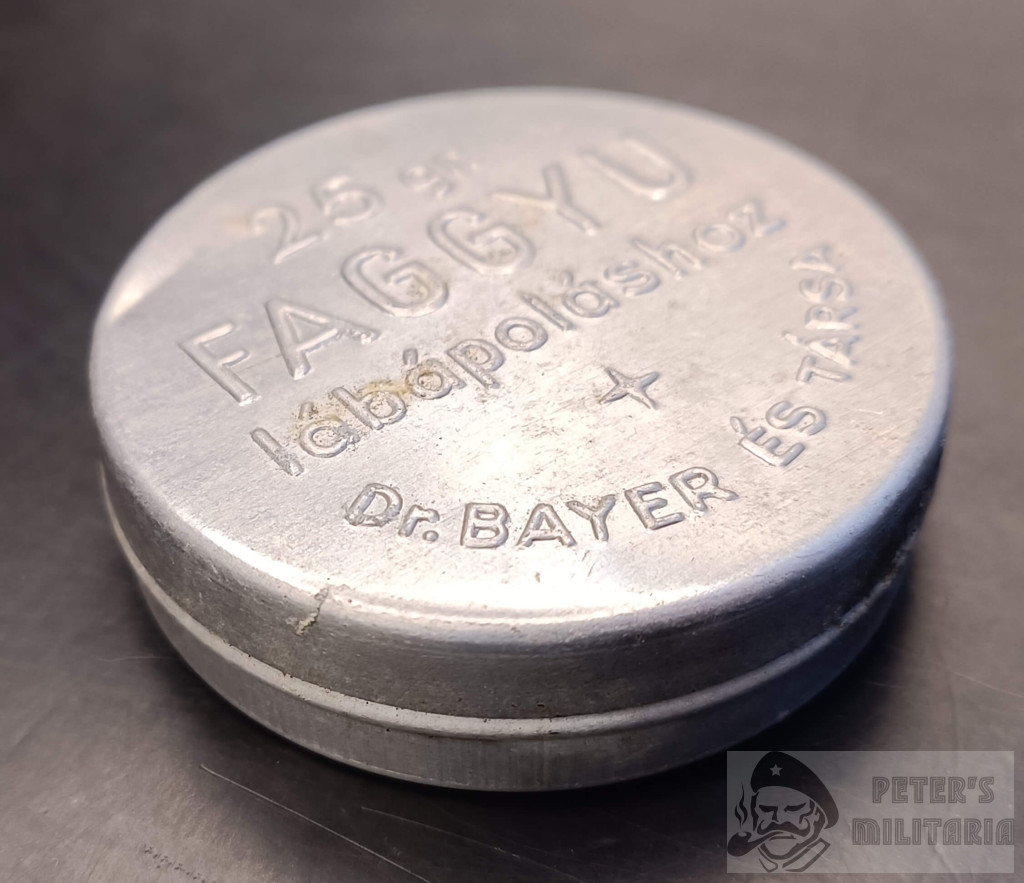 Dr. Bayer and Co. foot care ointment, in its own aluminum container.